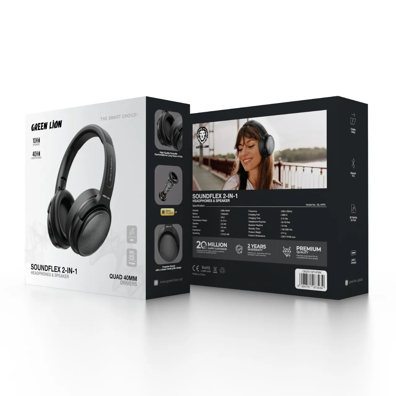{GN2N1SFHPBK} Green Lion SOUNDFLEX 2-in-1 Headphones and Speaker - Black