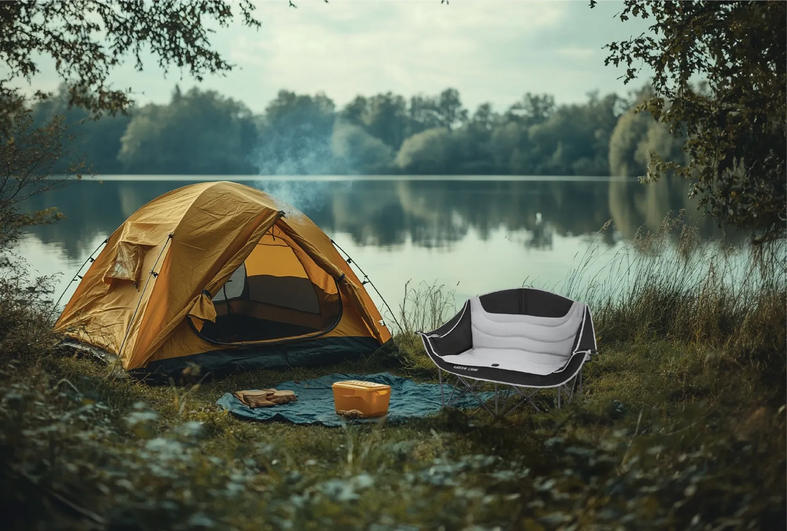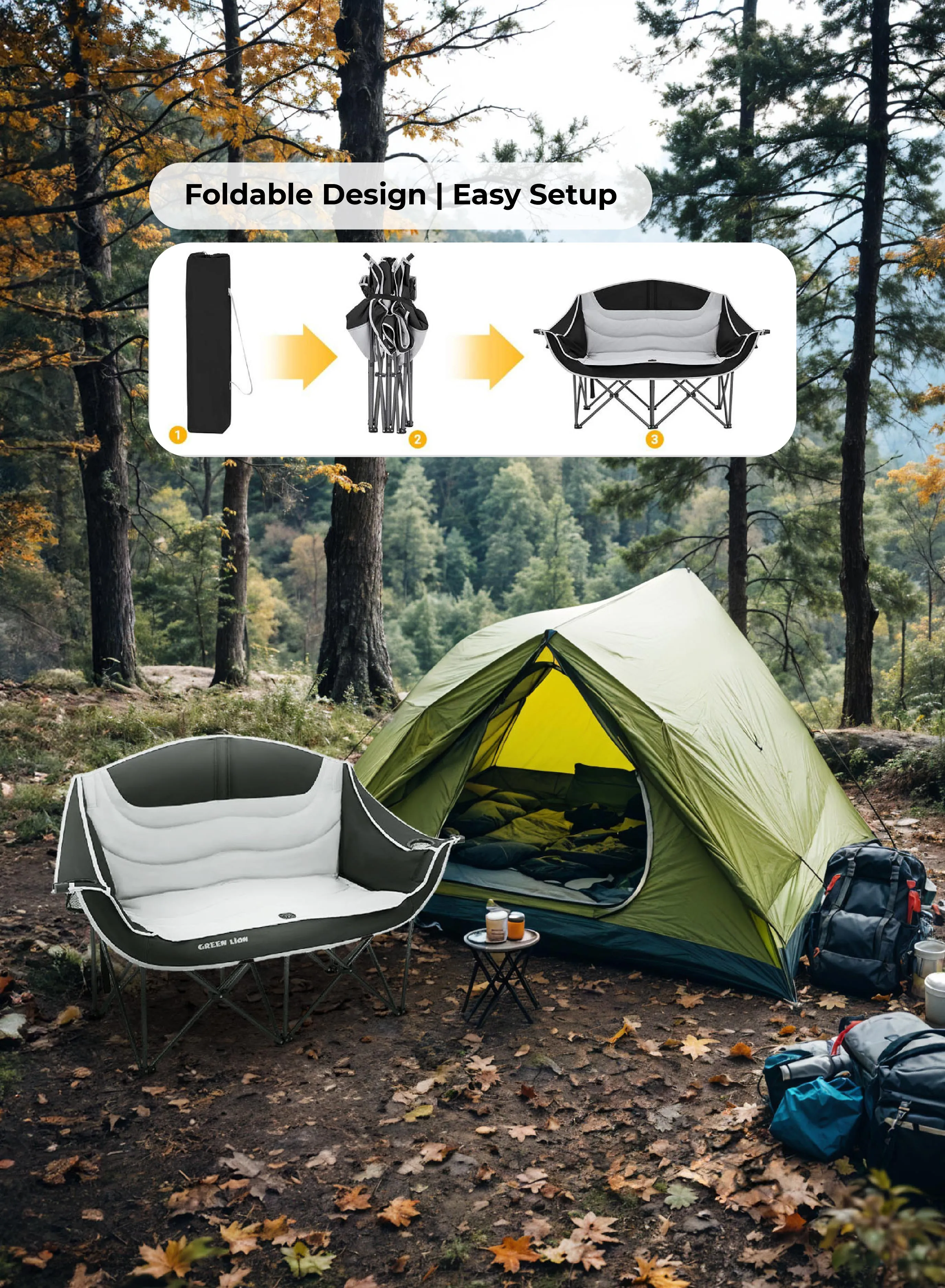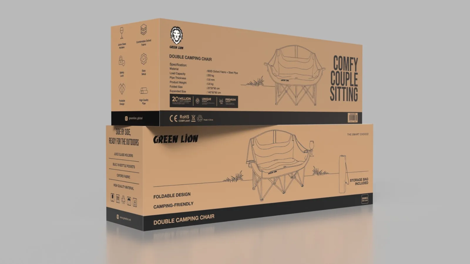 {GNDUACHAIRBG} Green Lion Double Camping Chair - Beige