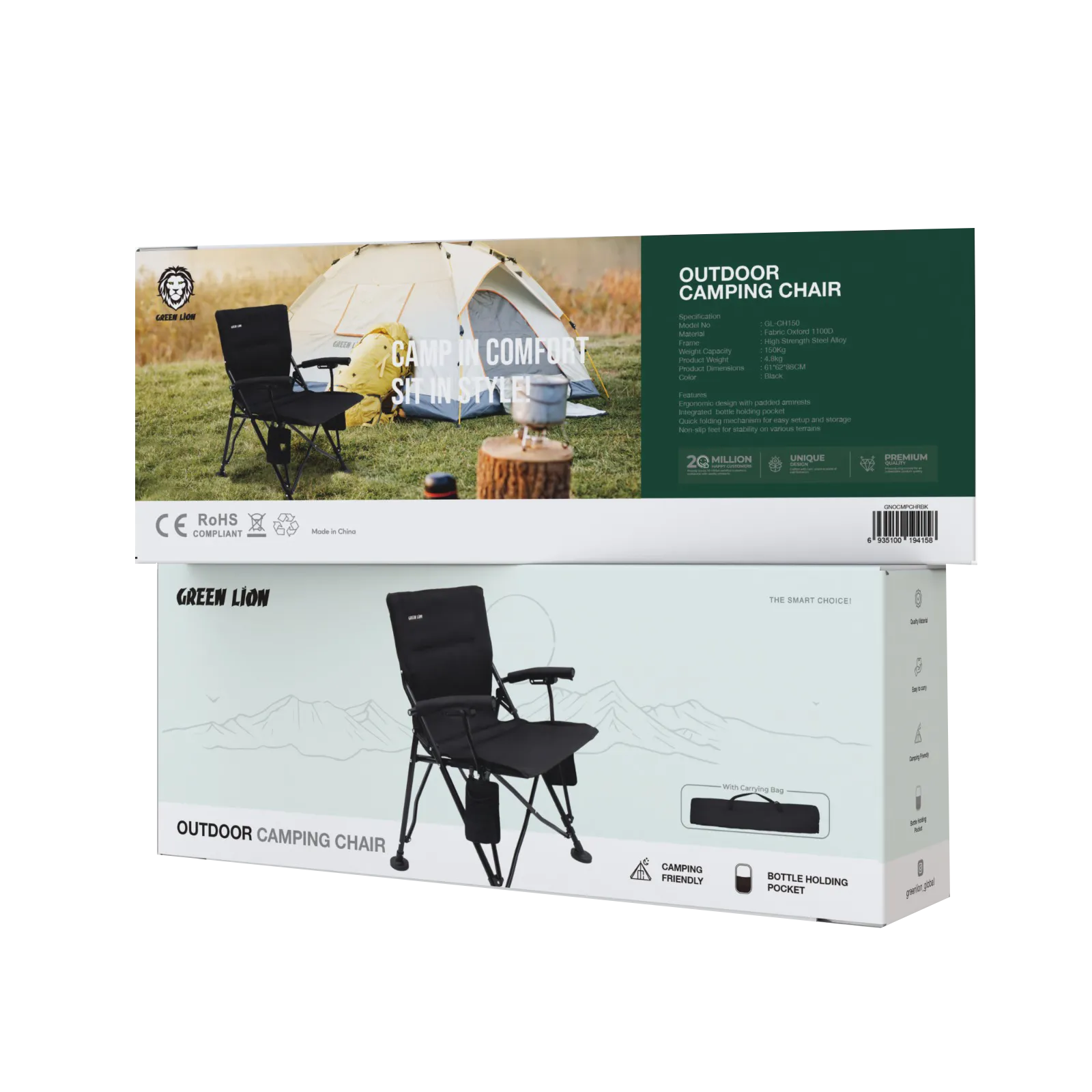 {GNOCMPCHRBK} Green Lion OUTDOOR CAMPING CHAIR WITH CARRYING BAG- BLACK