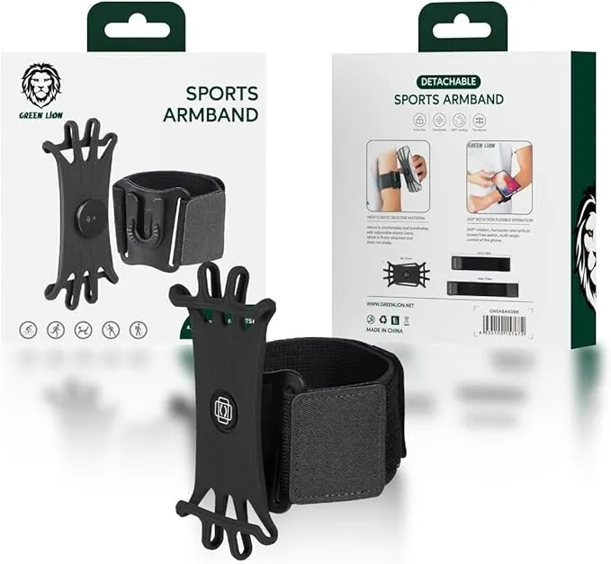 Green Detachable Sports Armband 4" - 6.8" - Black