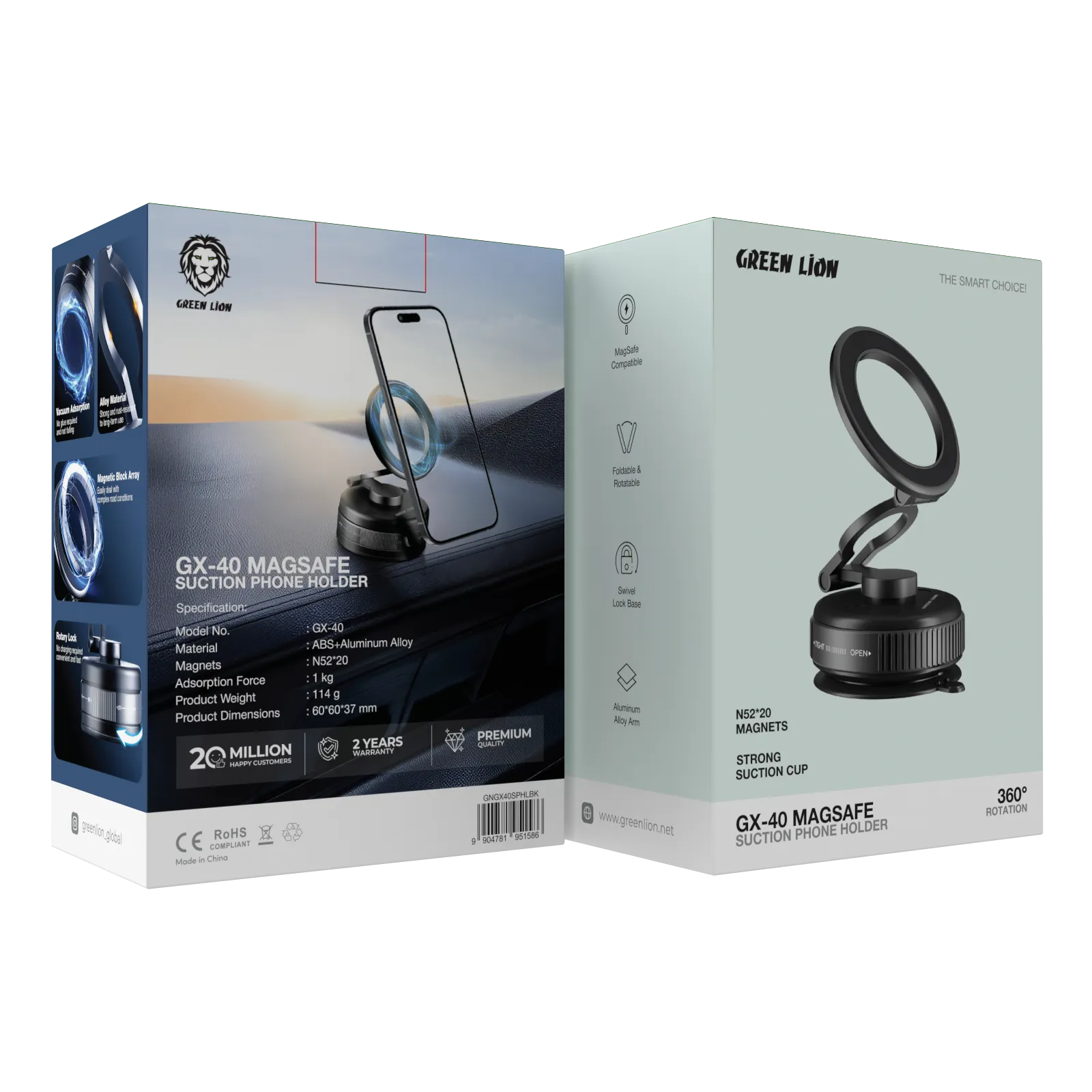 {GNGX40SPHLBK} Green Lion GX-40 Magsafe Suction Phone Holder - Black