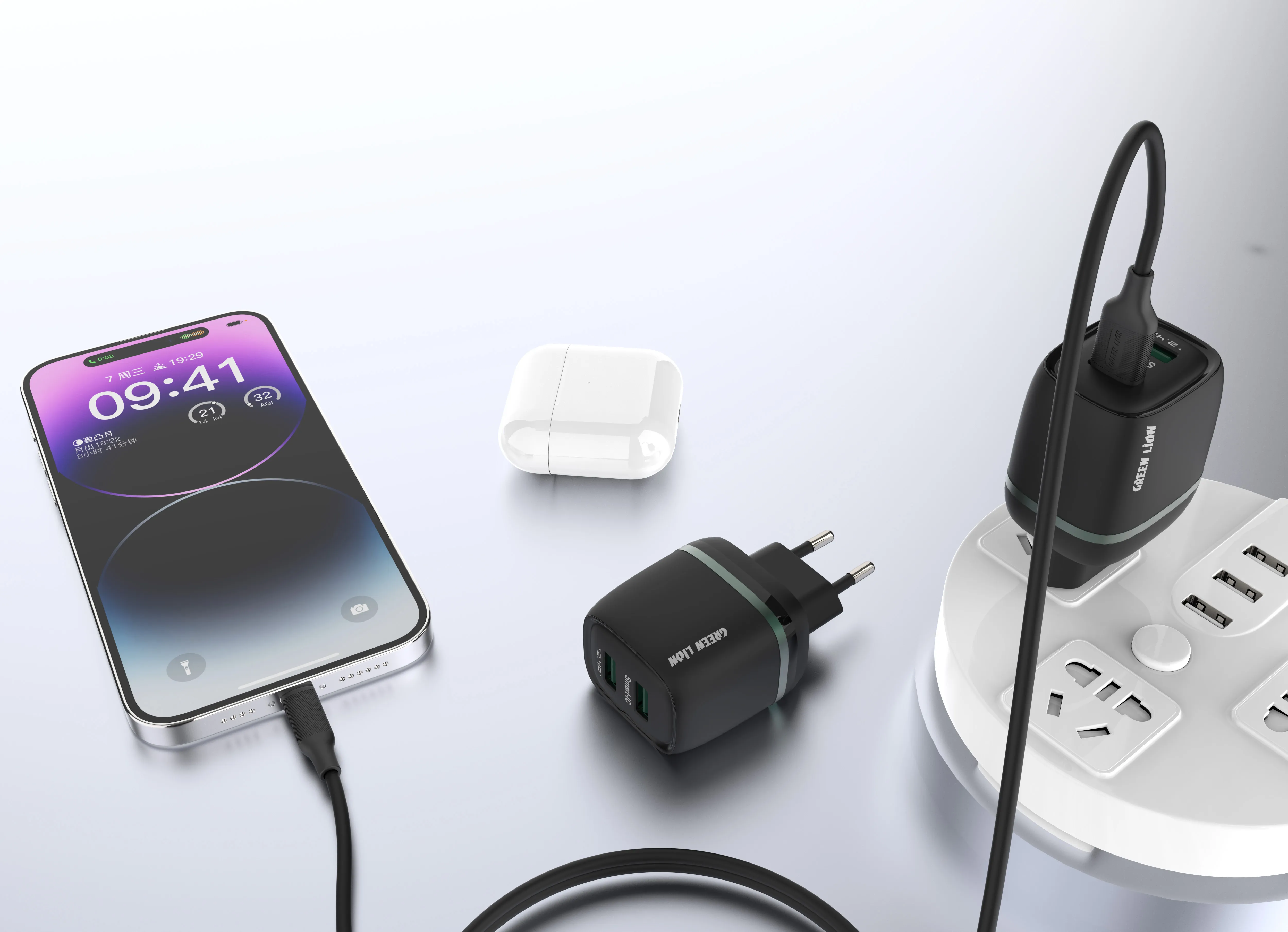 {GN2USBEU12BK} Green 2Usb 2.4A Chargers Eu Plug Dark Green