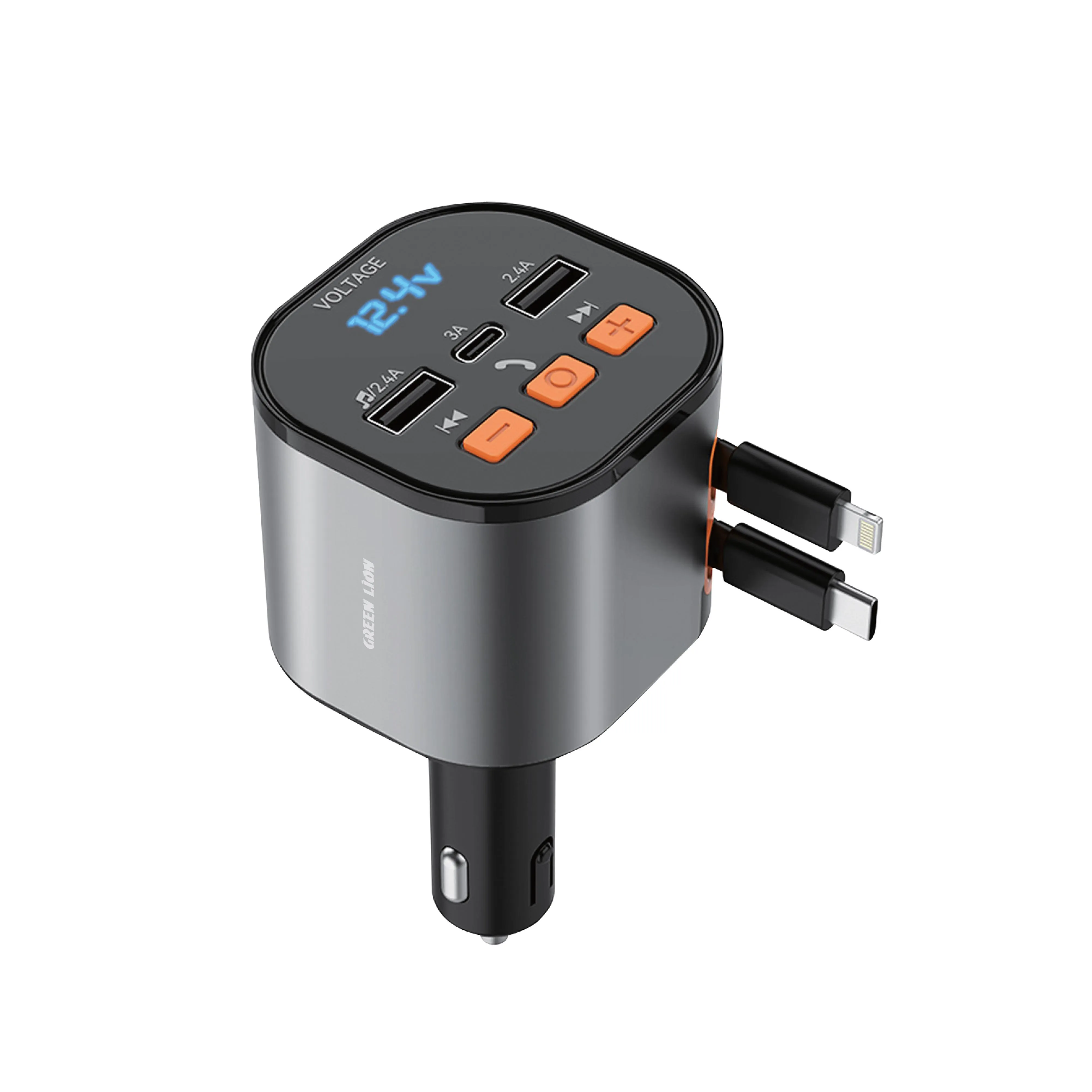 {GNFMRCH50WBK} Green Lion FM Retractable 50W Car Charger - Black