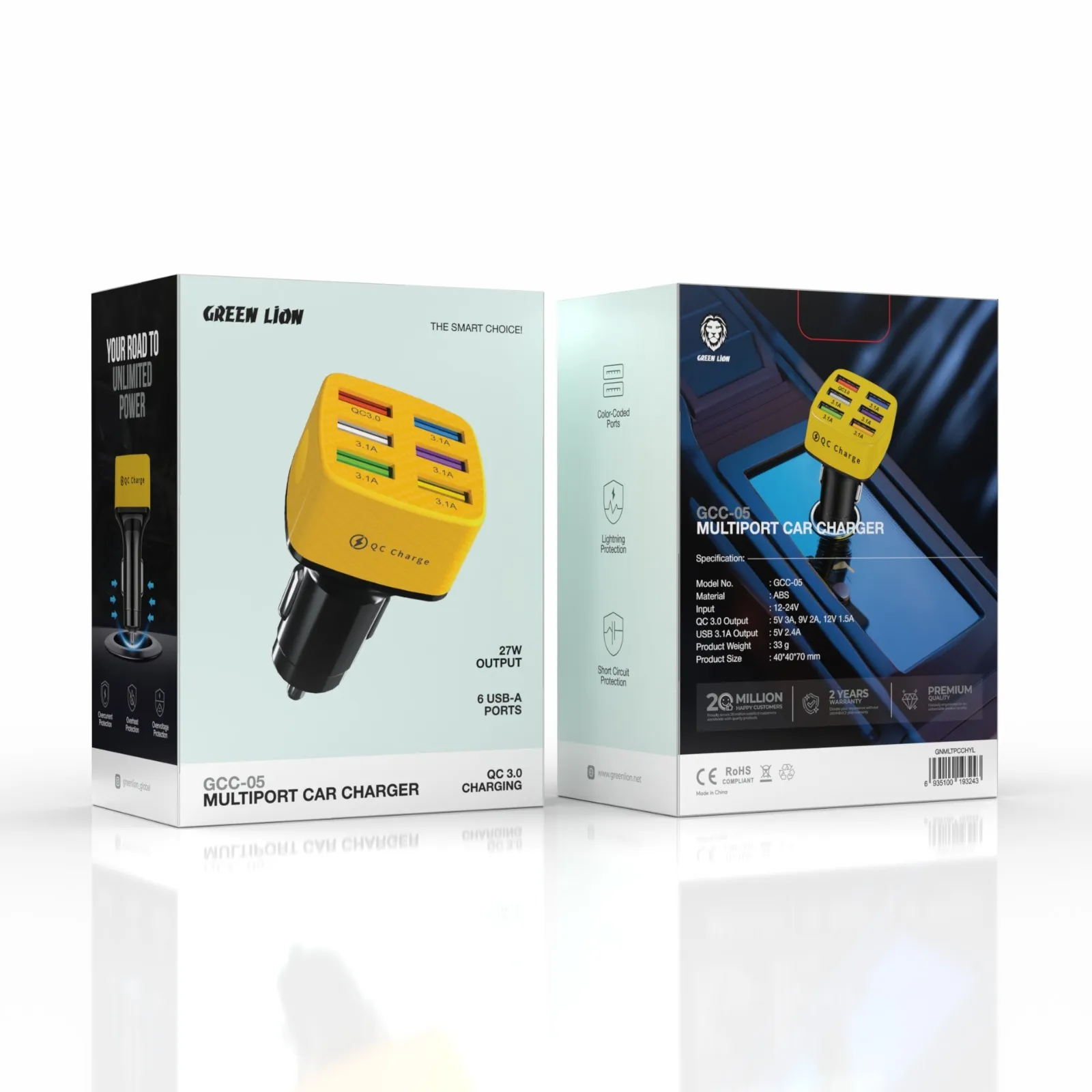 {GNMLTPCCHYL} Green Lion GCC-05 Multiport Car Charger Y3C - Yellow