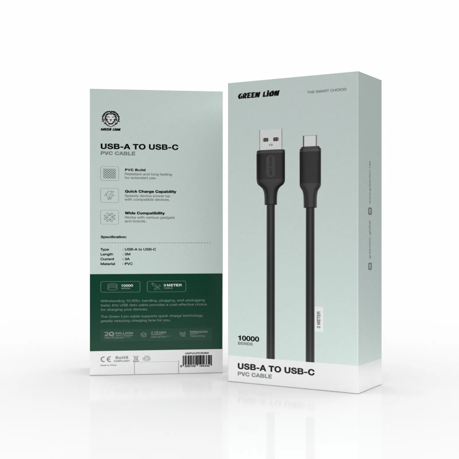 {GNPVCATC3MBK} Green Lion USB-A to USB-C PVC Cable 3M - Black