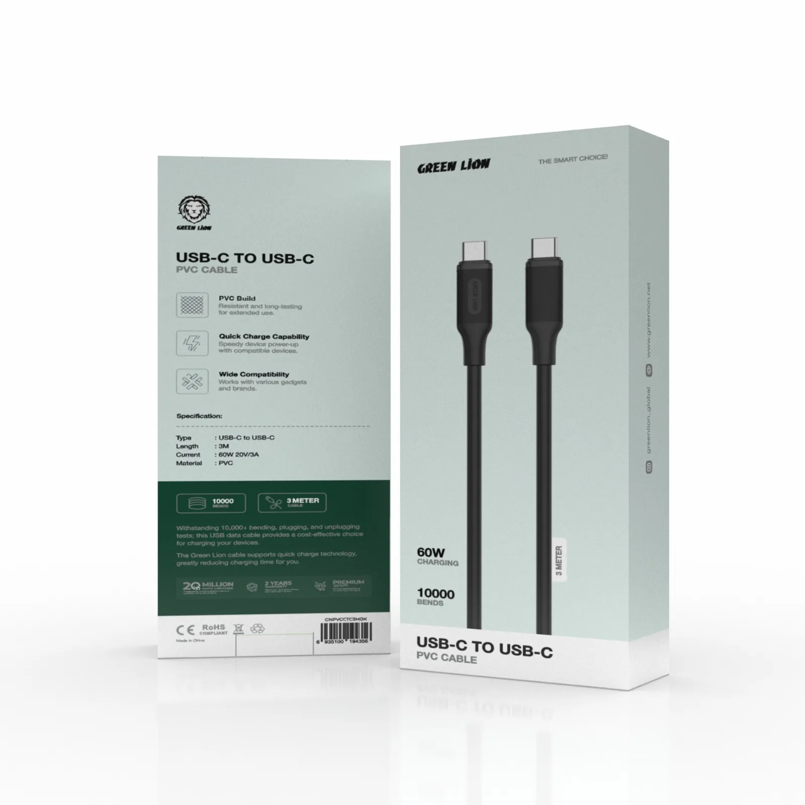 {GNPVCCTC3MBK} Green Lion USB-C to USB-C PVC Cable 3M - Black