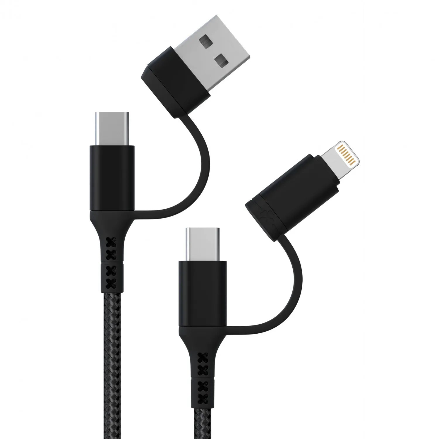 GREEN LION BRAIDED 2 IN 2 FAST CHARGING CABLE 1.2M 3A BLACK