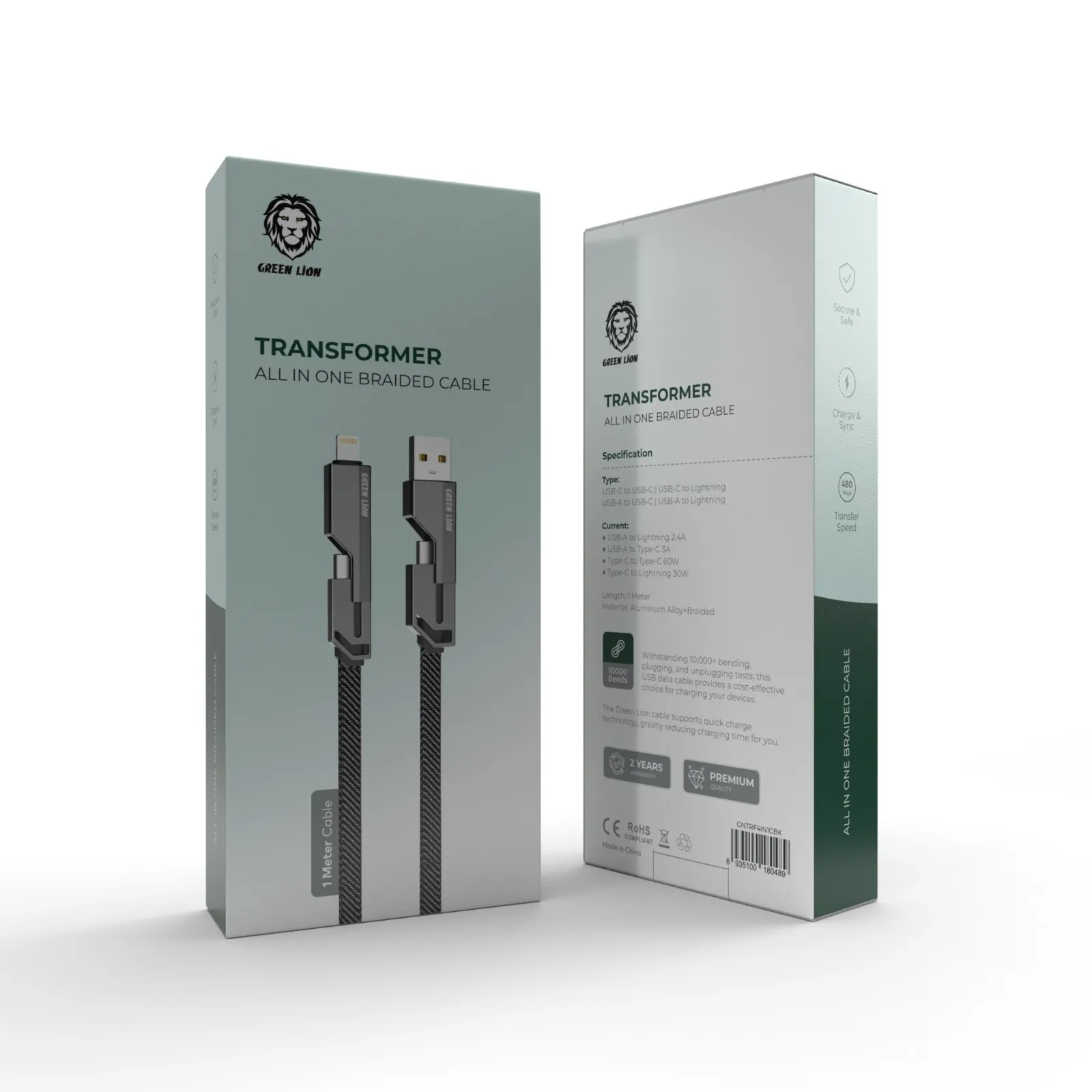 Green Lion Four in One Zinc Alloy Charging Data Cable 4 IN 1 - Black