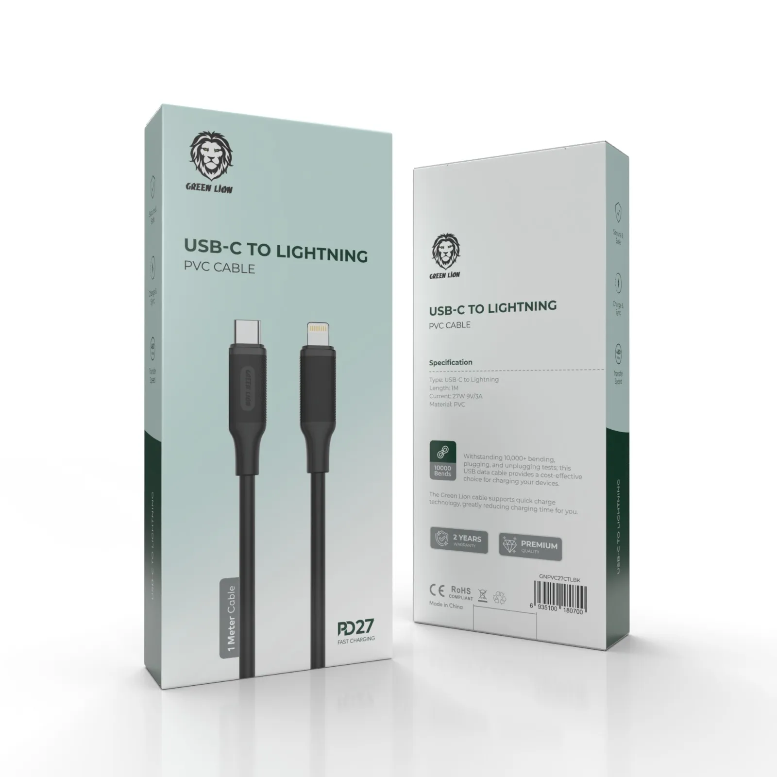 GREEN LION USB-C TO LIGHTNING PVC CABLE 1M PD 27W BLACK