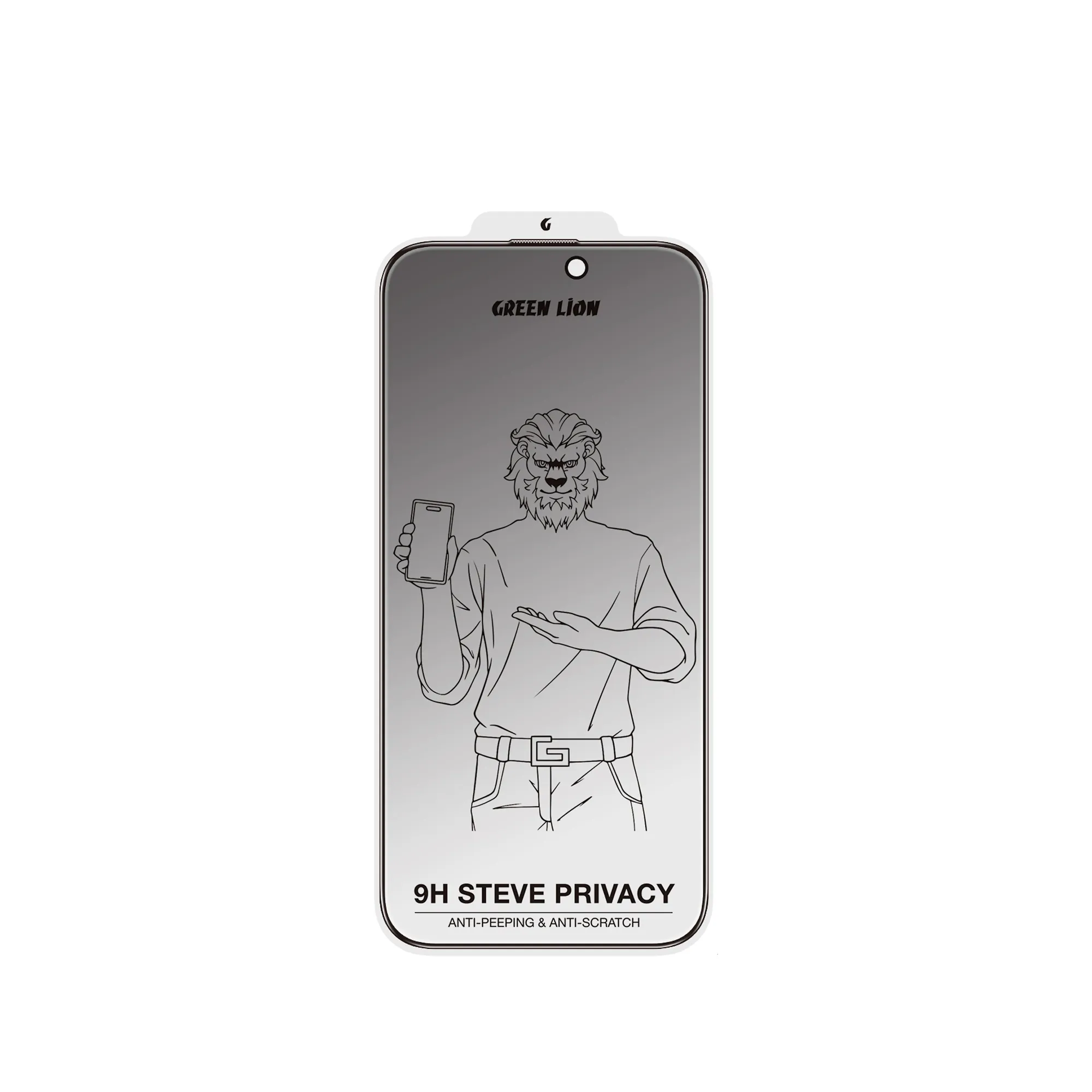 {GN9HSPY16PBK} Green Lion 9H Steve Privacy Full Glass Screen Protector for iPhone 16 Pro - Black
