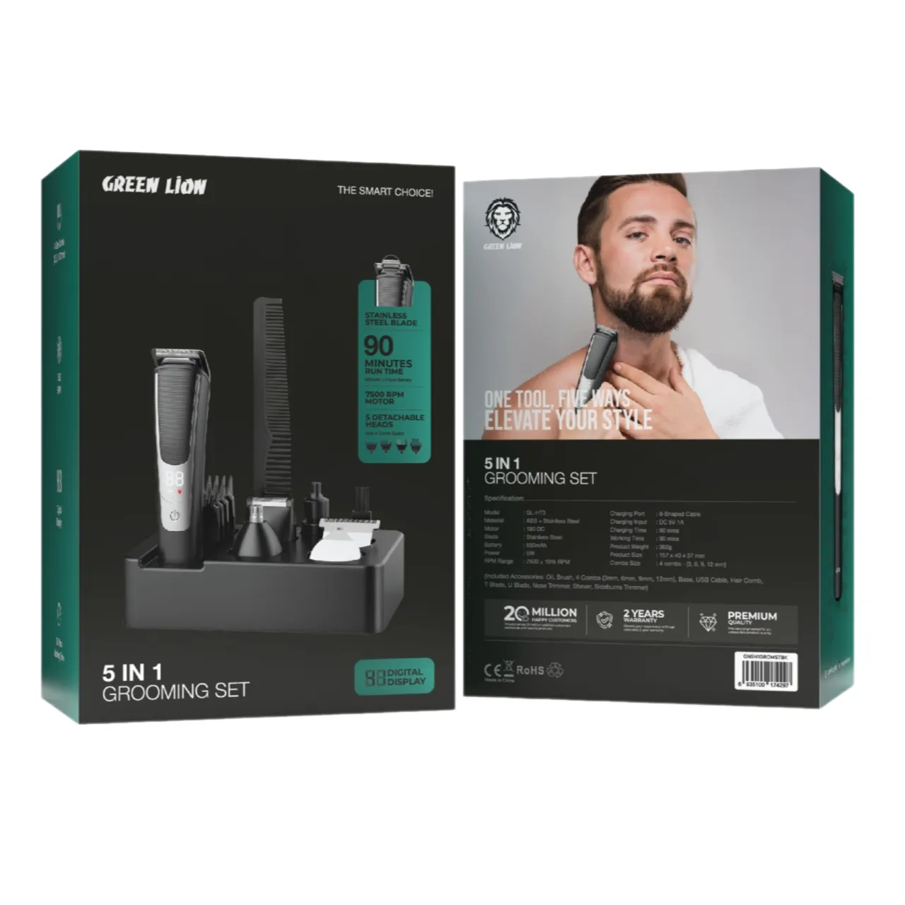 {GN5N1GROMSTBK} Green Lion 5 in 1 Grooming Set 600mAh - Black