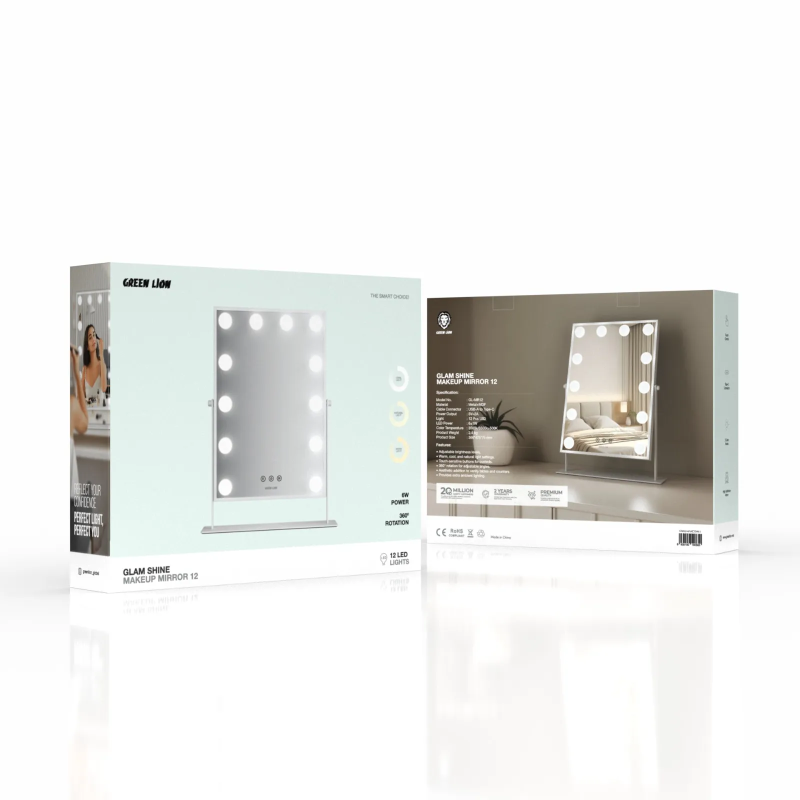 {GNGLMAKE12WH} Green Lion Glam Shine Makeup Mirror 12 LED Lights - White