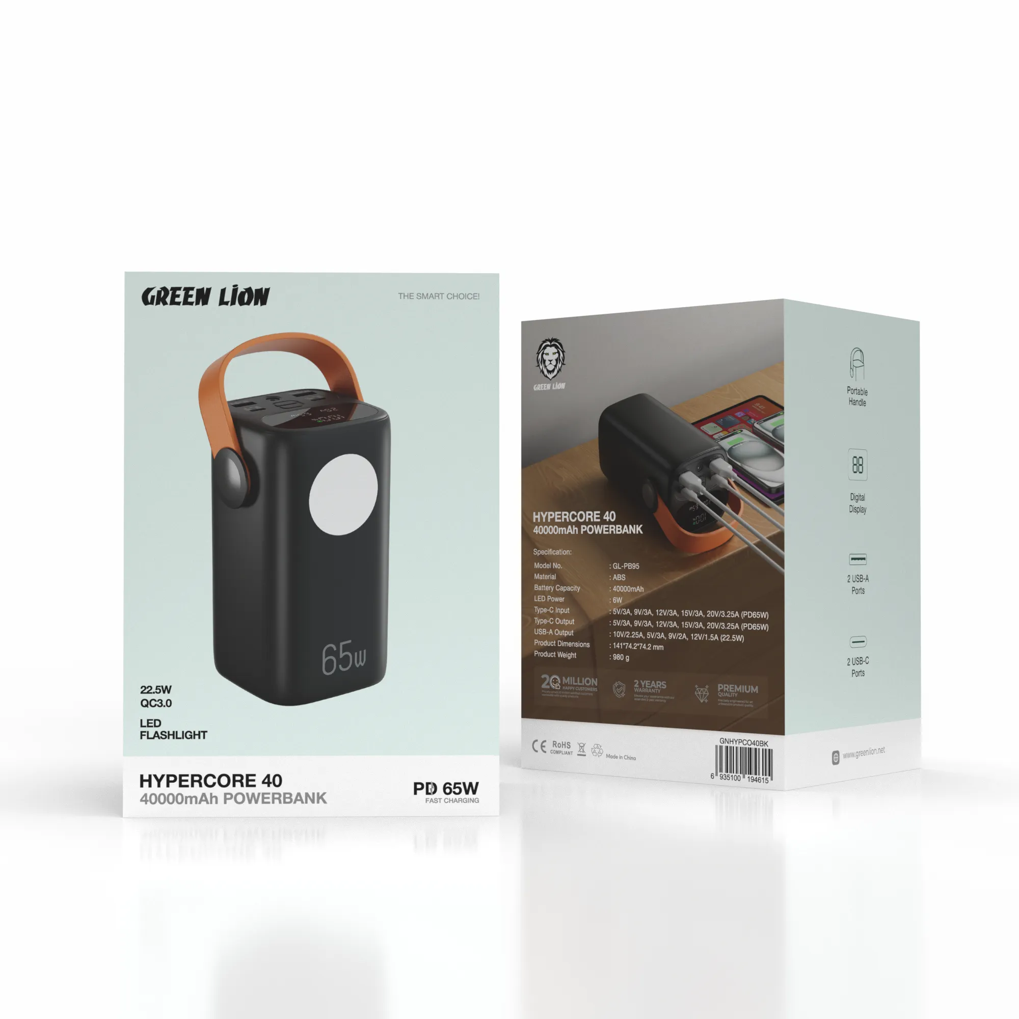 {GNHYPCO40BK} Green Lion Hyper Core 40 Power Bank 40000mAh PD 65W - Black
