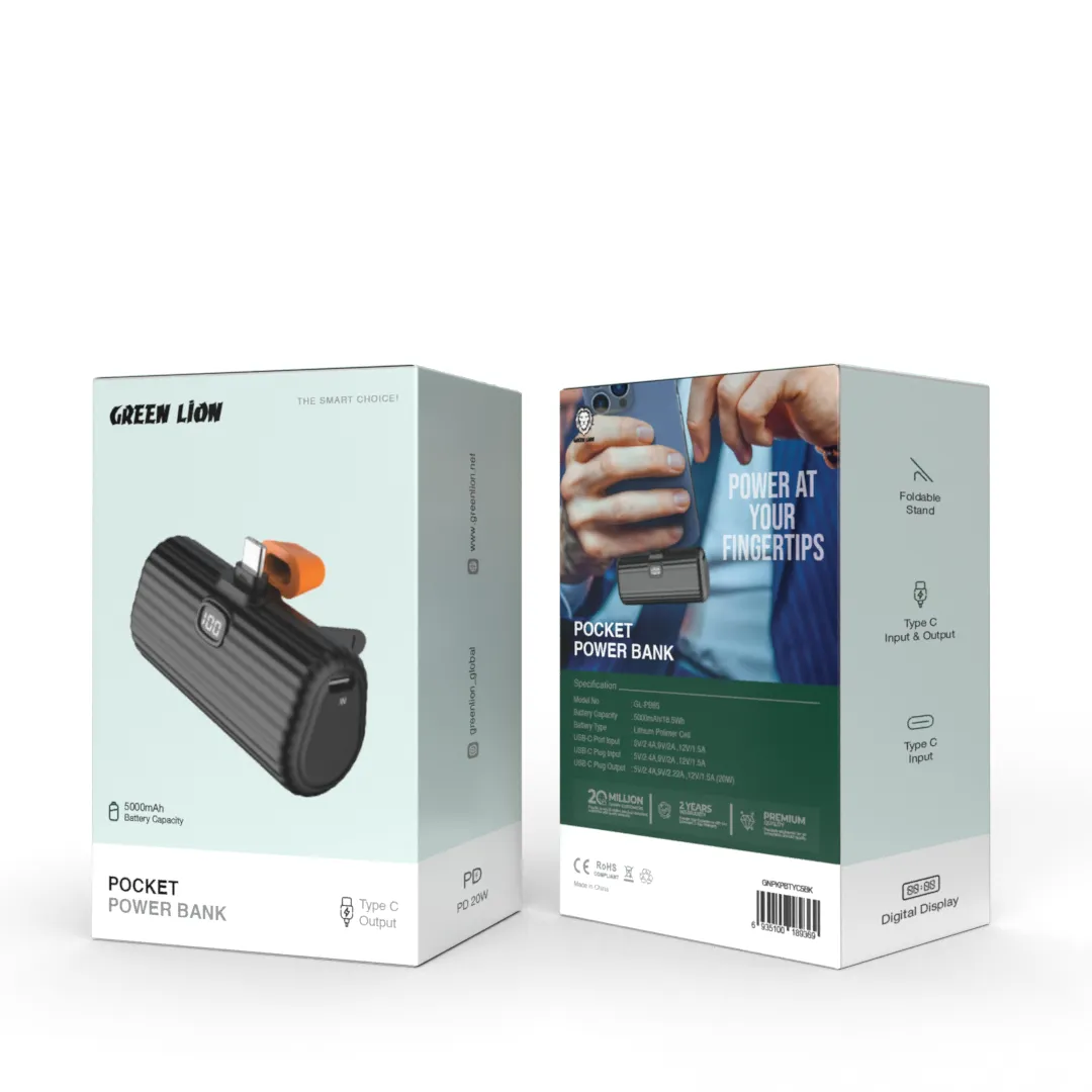 {GNPKPBTYC5BK} Green Lion Pocket Power Bank Type C Output 5000mAh - Black