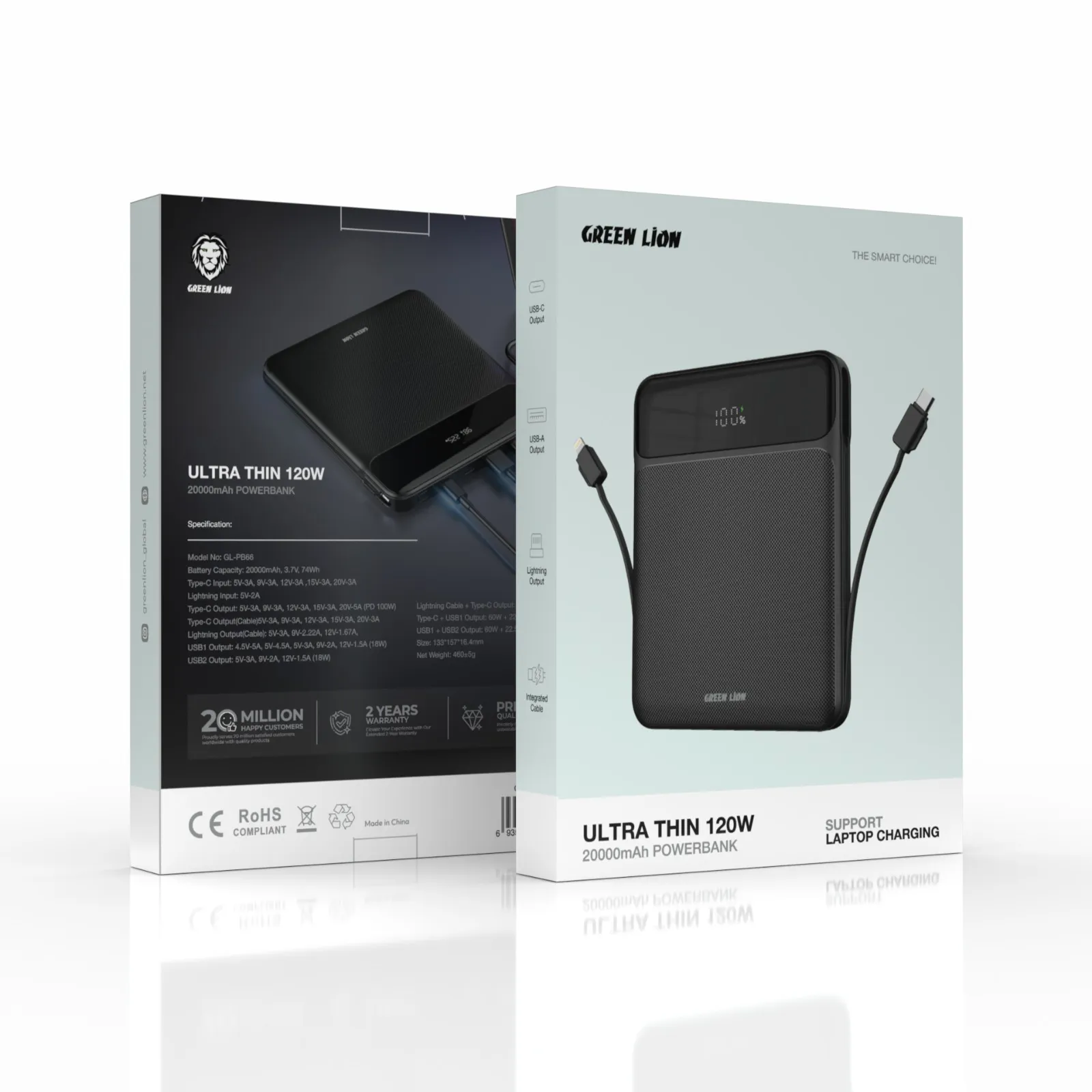 Green Lion Ultra Thin 120W 20000mAh Power Bank – Black