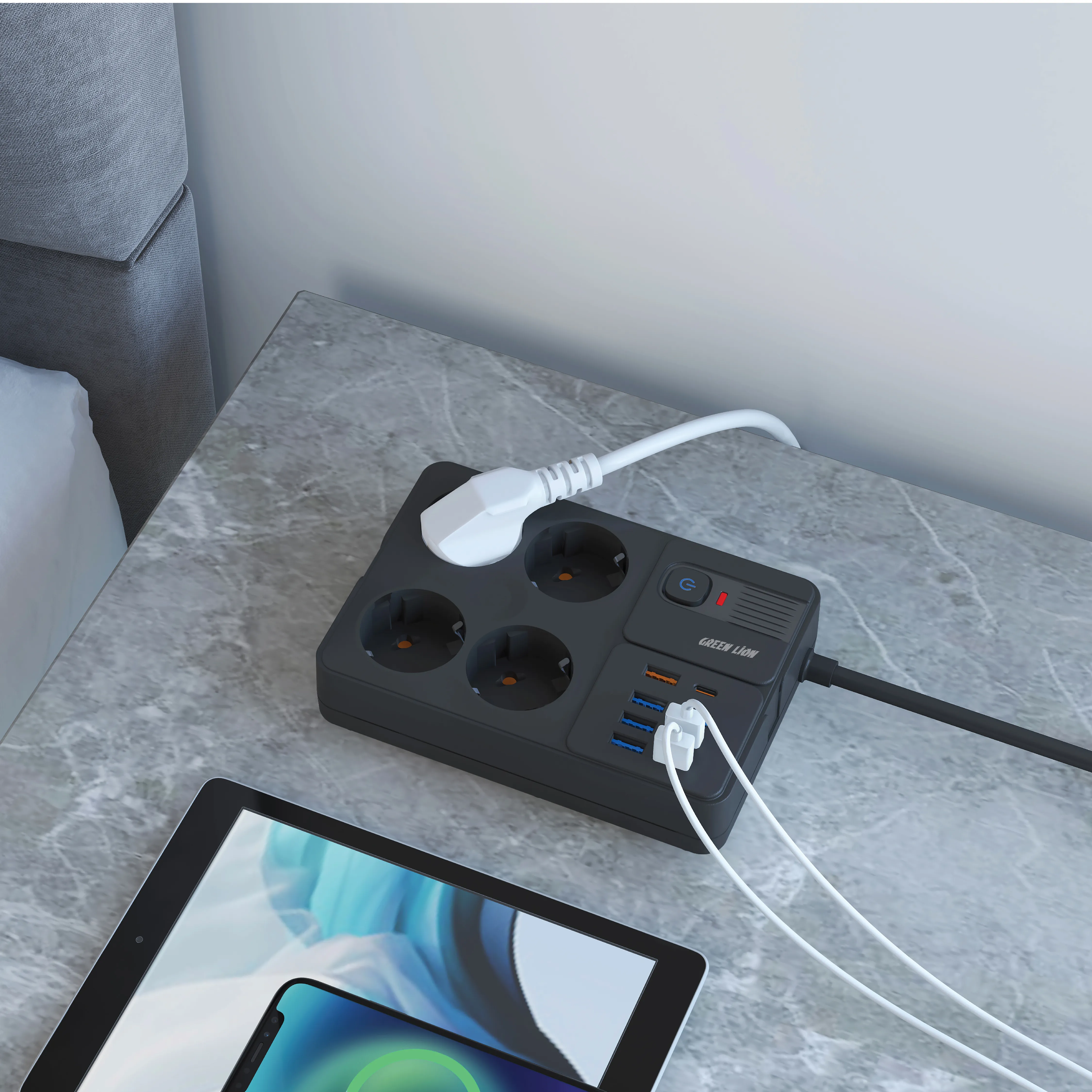 {GNPS7UPDEUBK} Green Lion Power Socket 7 USB-A Port & 1 PD Port - Black