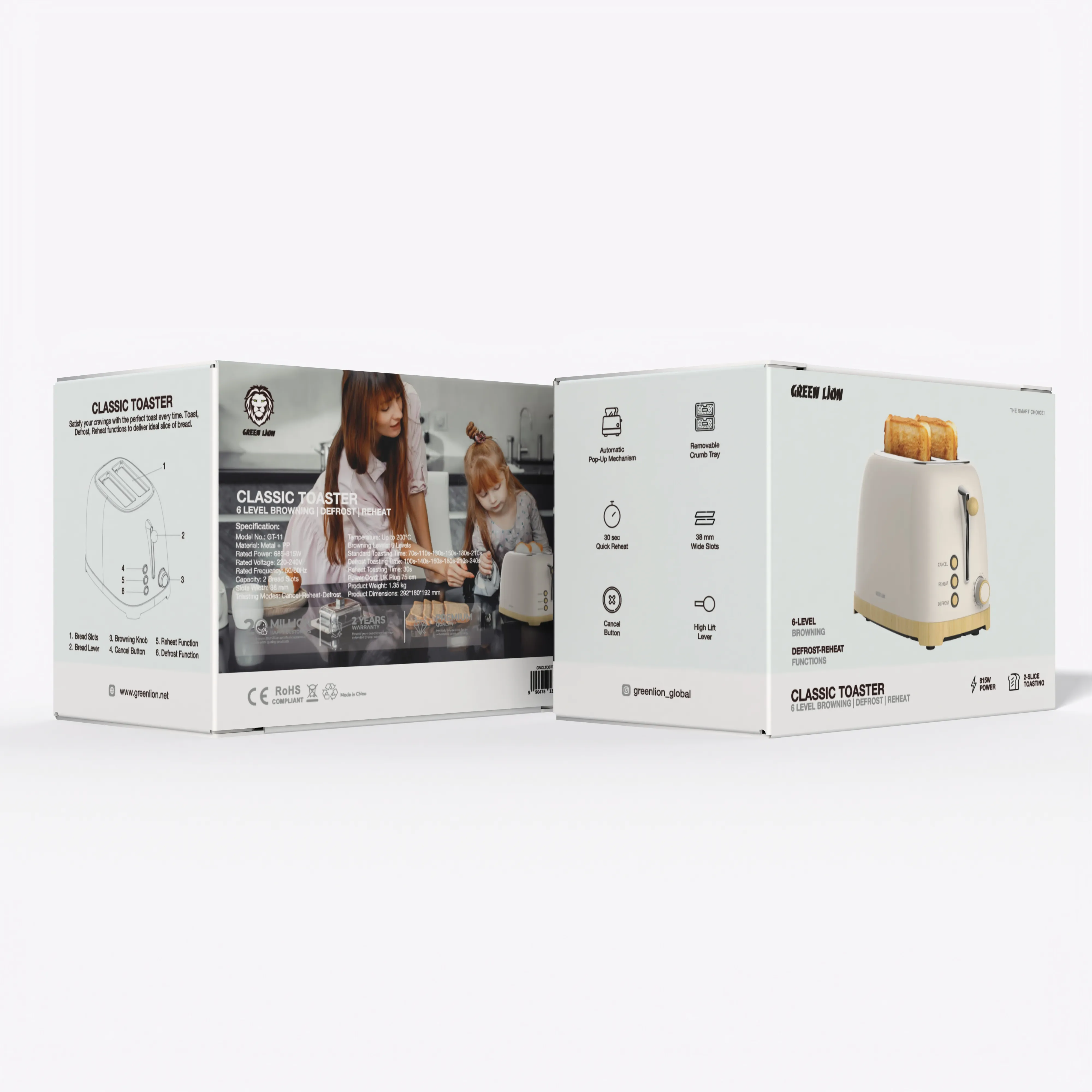 {GNCLTOSTRBG} Green Lion Classic Toaster 6 Level Browning - Beige