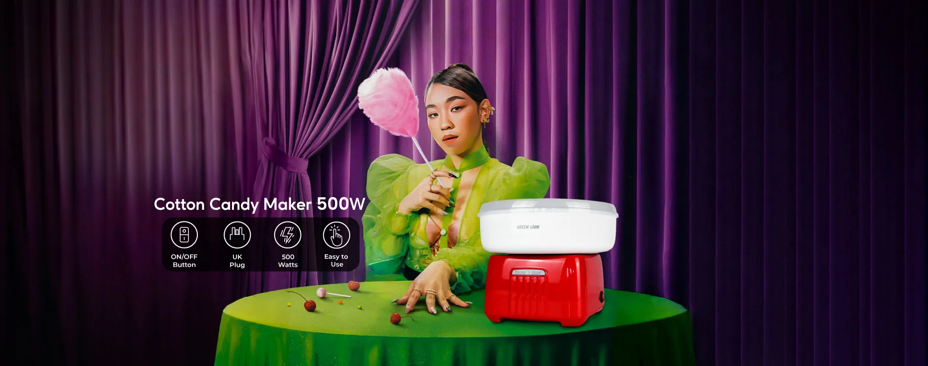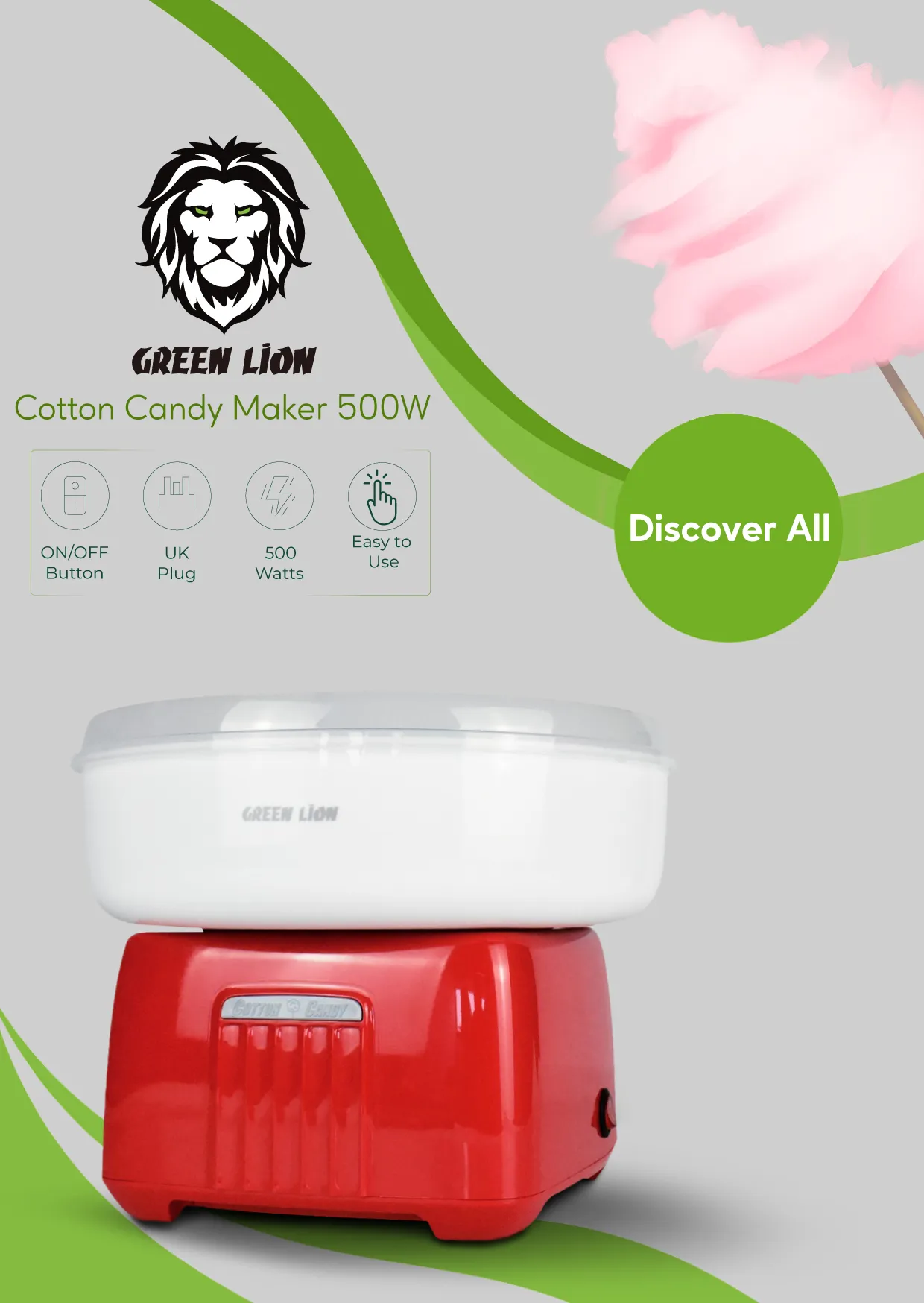 {GNCTNCDYWHRD} Green Lion Cotton Candy Maker 500W - White/Red