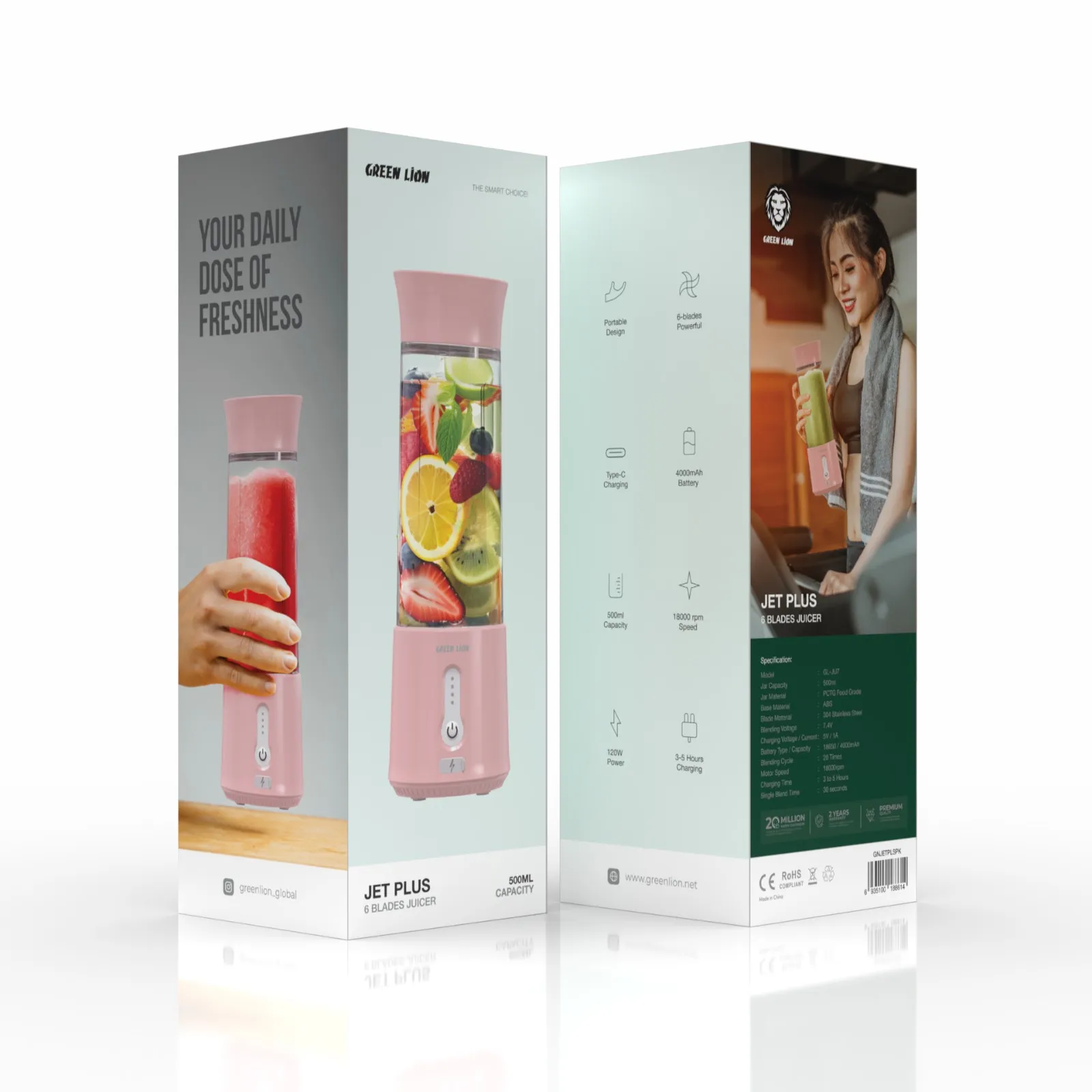{GNJETPLSPK} Green Lion JETPLUS Six Bladed Juicer - Pink