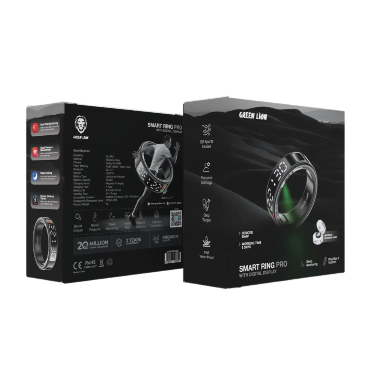 {GNSRINGP9BK} Green Lion Smart Ring Pro With Digital Display 9 - Black