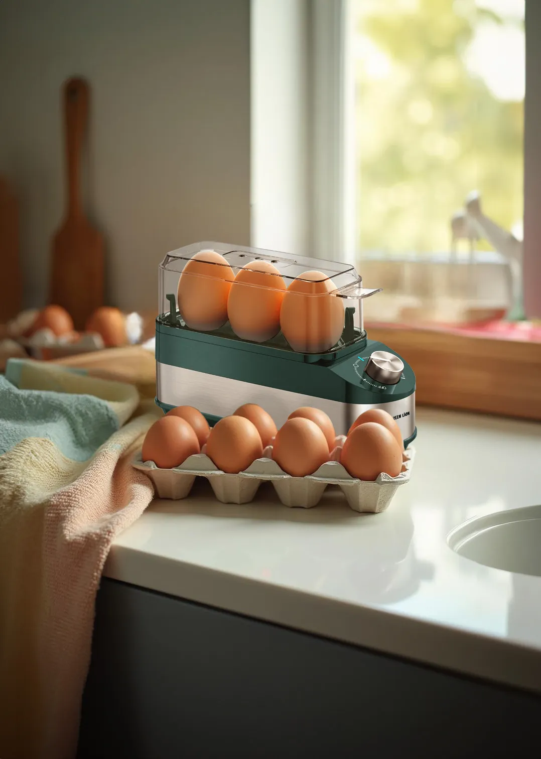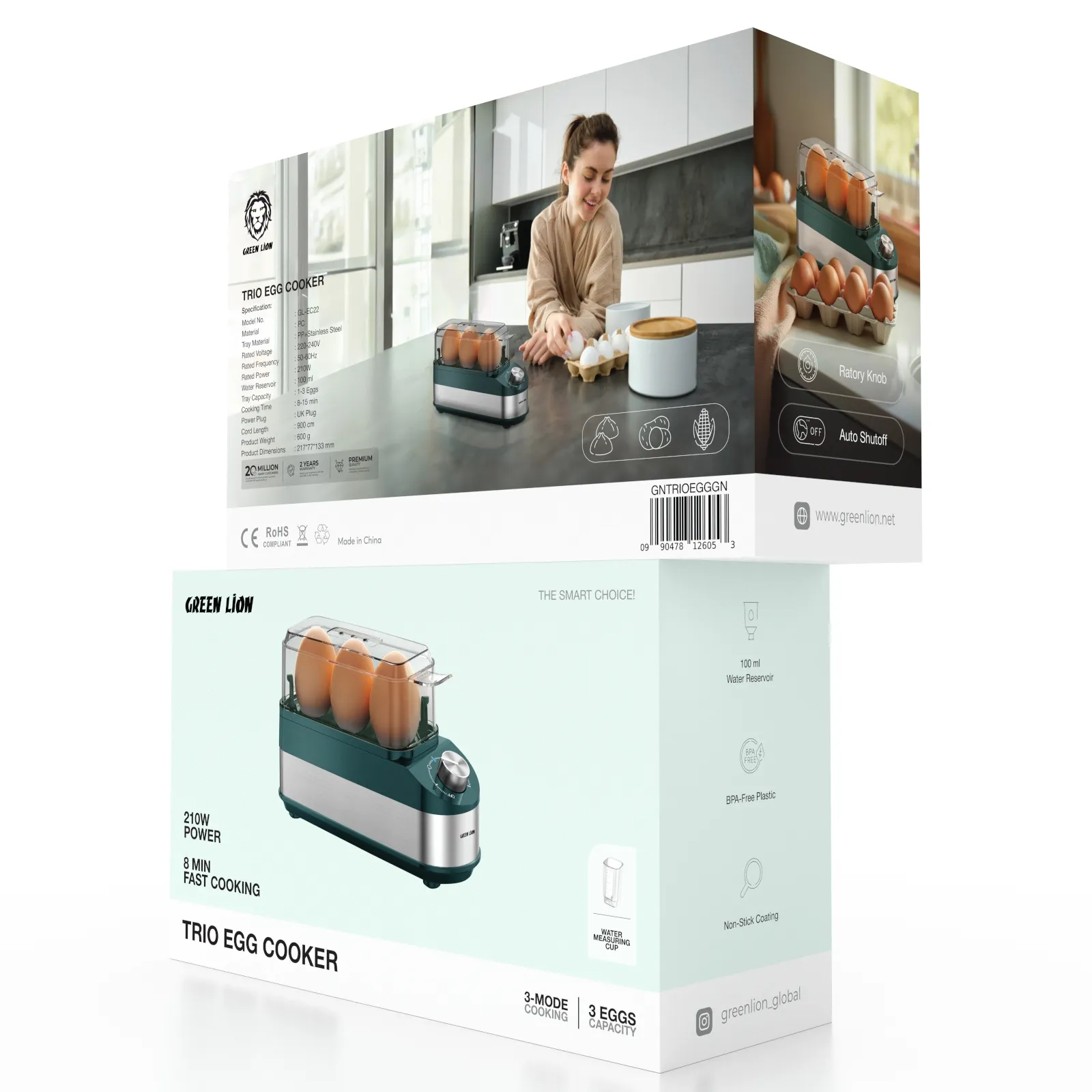 {GNTRIOEGGGN} Green Lion Trio Egg Cooker - Green