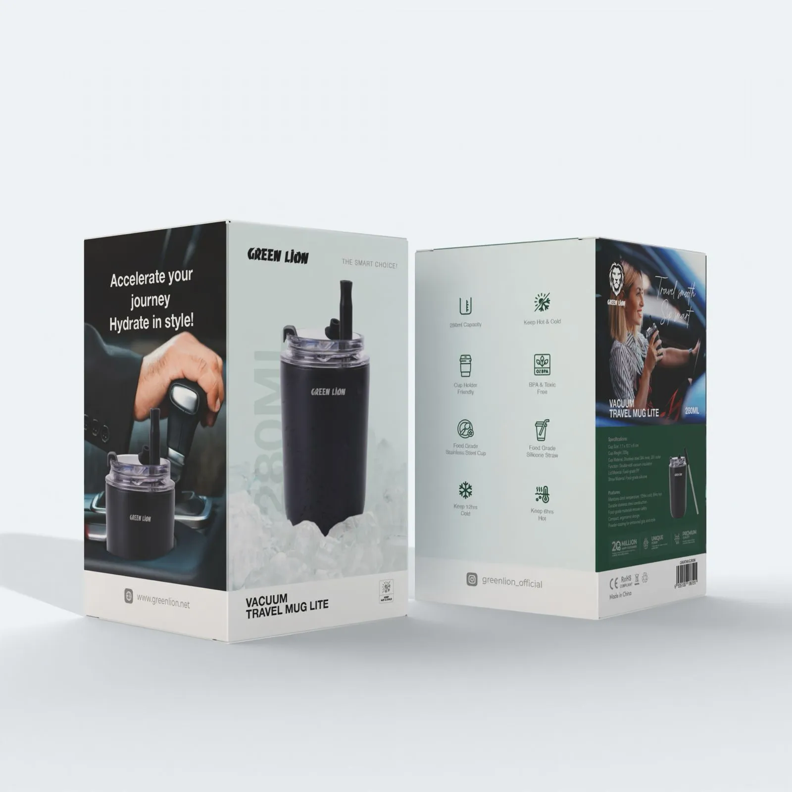 {GNVATMUG280BK} Green Lion Vacuum Travel Mug Lite - 280 ML - Black