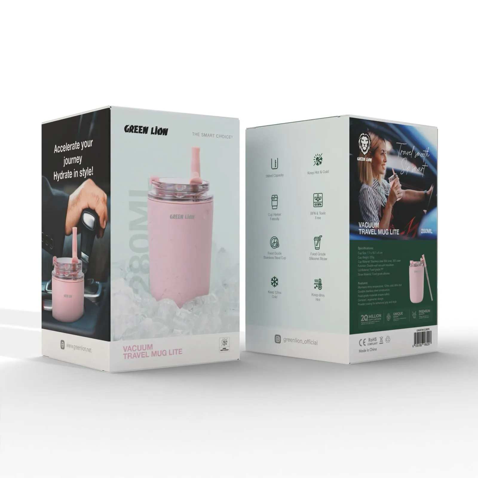 {GNVATMUG280PK} Green Lion Vacuum Travel Mug Lite - 280 ML - Pink