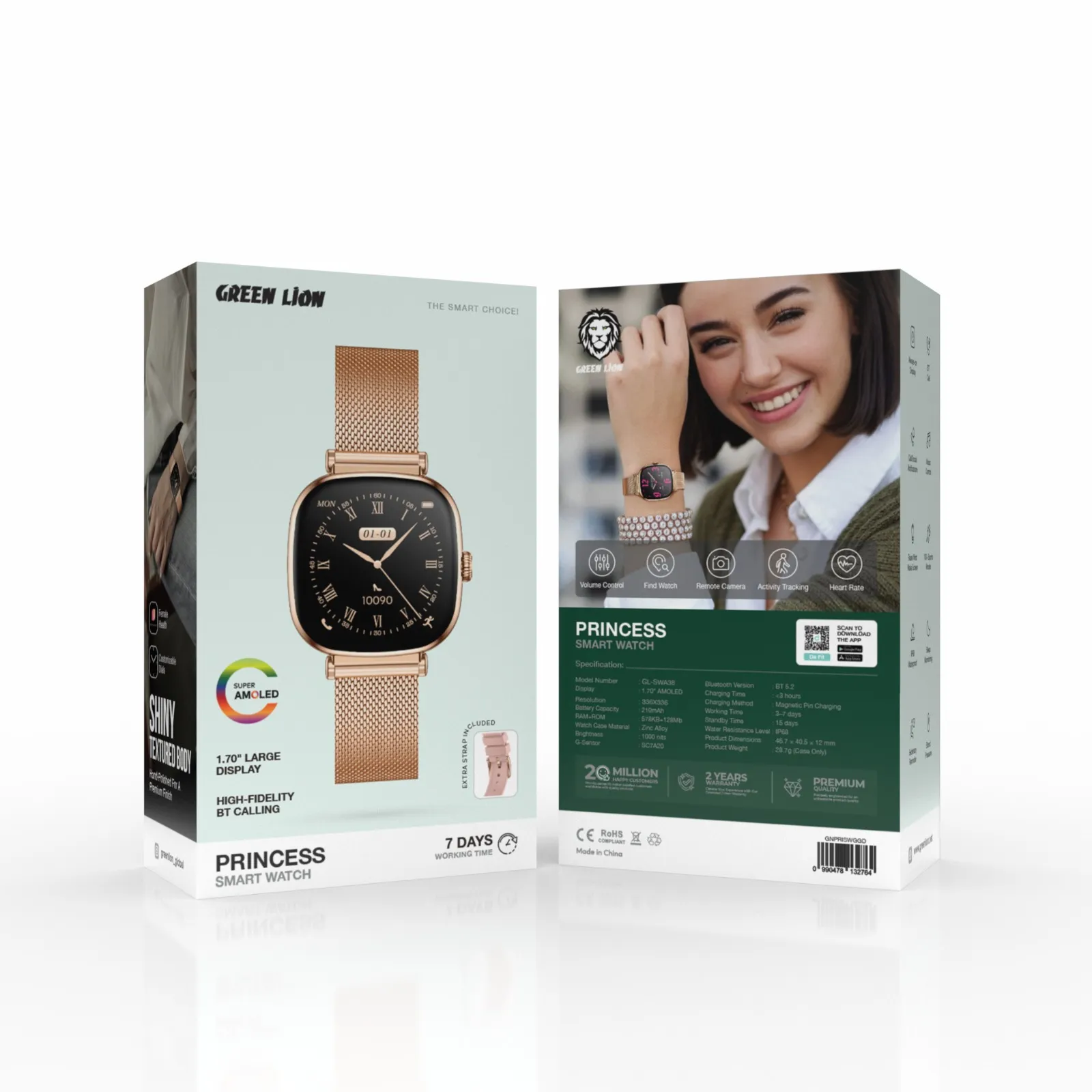 {GNPRISWGGD} Green Lion Princess Smart Watch - Glossy Gold